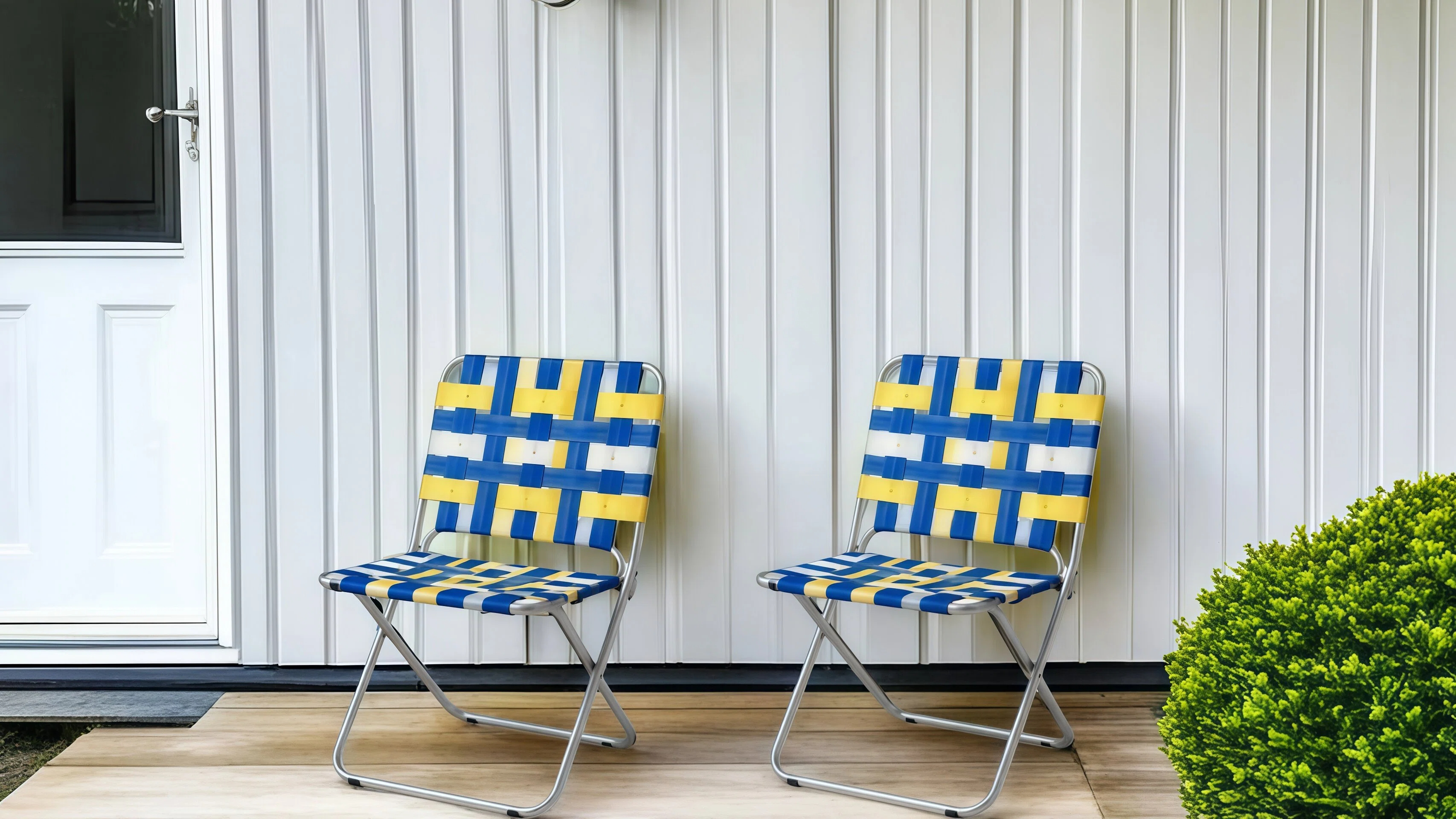 Folding Chairs Set with Blue Yellow Woven Straps and Steel Frame